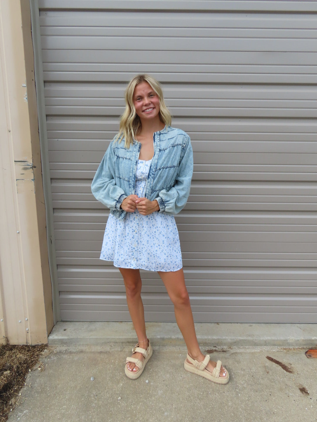 - A fresh spin on a classic silhouette, this light wash denim bomber adds an effortless edge to any outfit!!