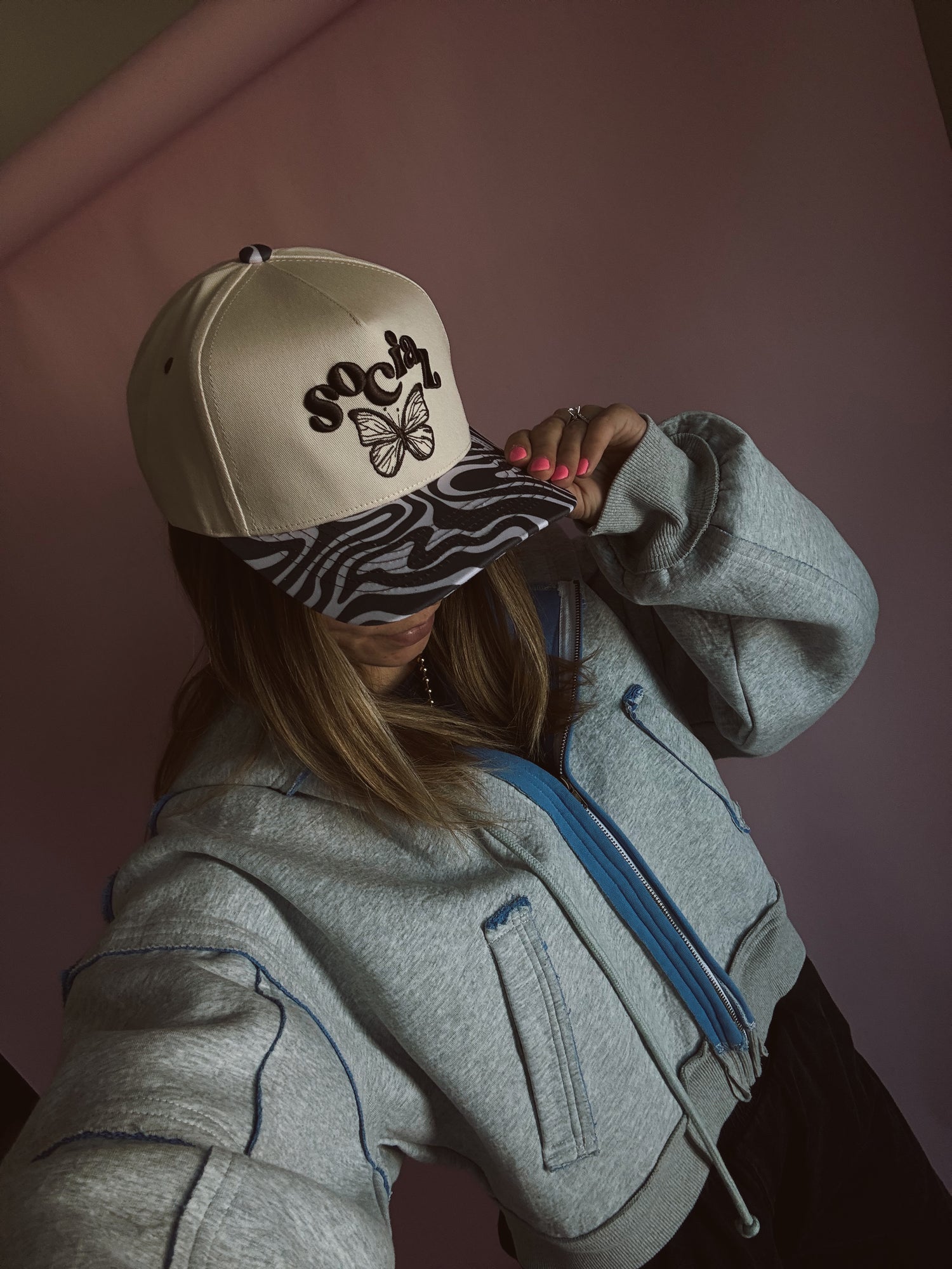 Social butterfly zebra trucker hat